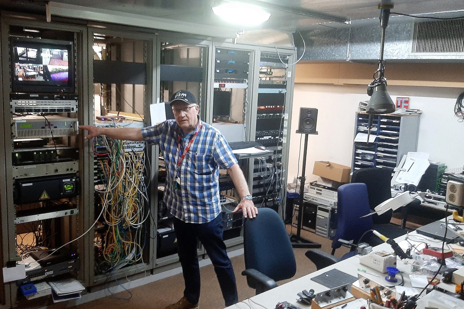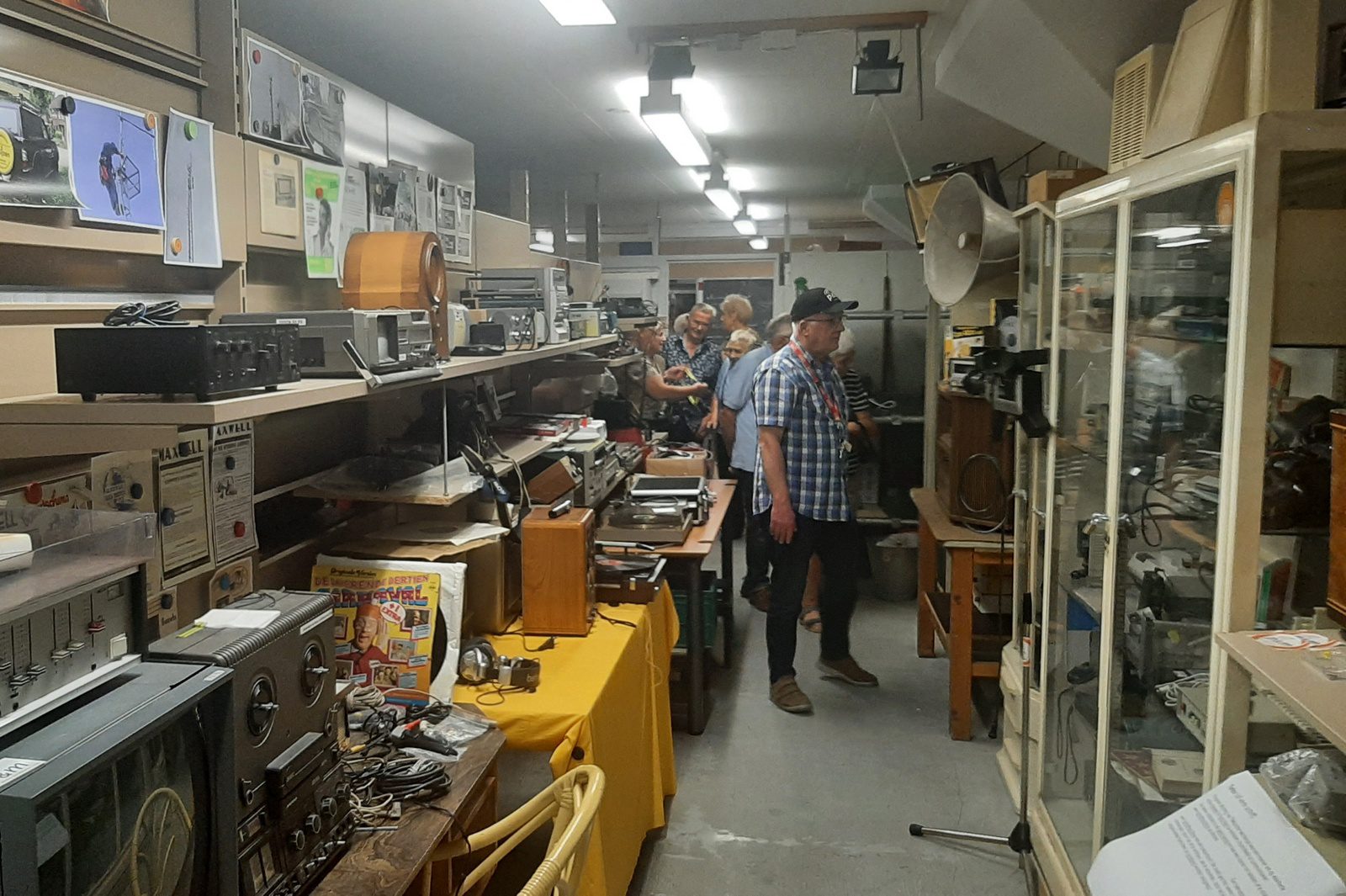 Na deze algemene informatieverschaffing werden de deelnemers verdeeld over 3 groepen en werd het complex verkend onder begeleiding van deskundige vrijwilligers die uitleg gaven en vragen beantwoordden van de deelnemers. Op de bovenverdieping bevindt zich de TV-studio. De radiostudio’s zijn ondergebracht in de benedenverdieping, in de wandelgangen “bunker” genoemd. Dit vanwege het feit dat die oorspronkelijk gebouwd is als atoomschuilkelder. Behalve studio’s zijn in het gebouw ook technische ruimtes, magazijnruimtes alsmede archiefruimtes waar o.a. beeld- en geluidopnames worden bewaard, maar tevens ook apparatuur en materialen die de geschiedenis vertellen van wat nodig was en is om uit te kunnen zenden en in de huiskamers te kunnen ontvangen.