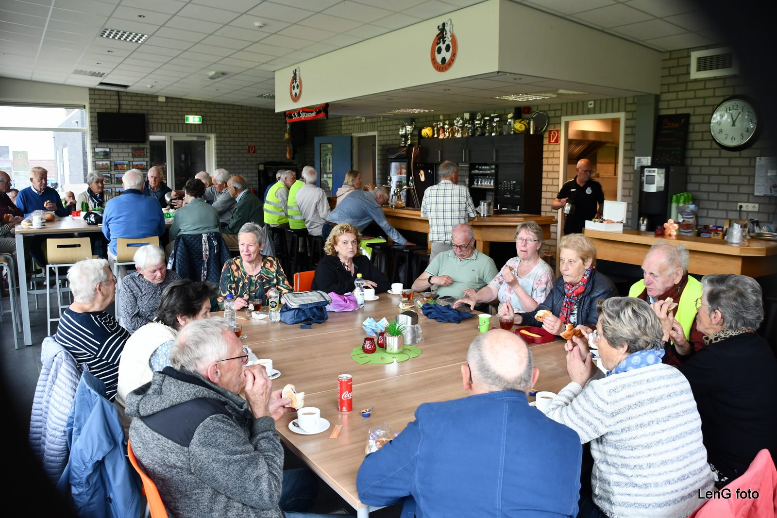 Vervolgens ging het binnendoor via Buggenum, langs het kanaal, de brug over de Maas en dwars door het centrum van Roermond naar Leeuwen, de 2e pauzeplek. Hier mochten we, met dank aan de gastvrijheid van voetbalvereniging SC Leeuwen onze eigen meegebrachte broodjes opeten met daarbij een lekker kopje thee of koffie.