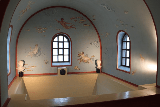 Voor de liefhebbers was er ’s ochtends voor het ontbijt de mogelijkheid om onder leiding van Wim van den Bemt een ochtendwandeling te maken. Om 9.45 u op weg naar Borg. In Borg bevindt zich een herbouwde Romeinse villa. Hier werd ons gezelschap weer in twee groepen verdeeld en kregen wij een rondleiding.