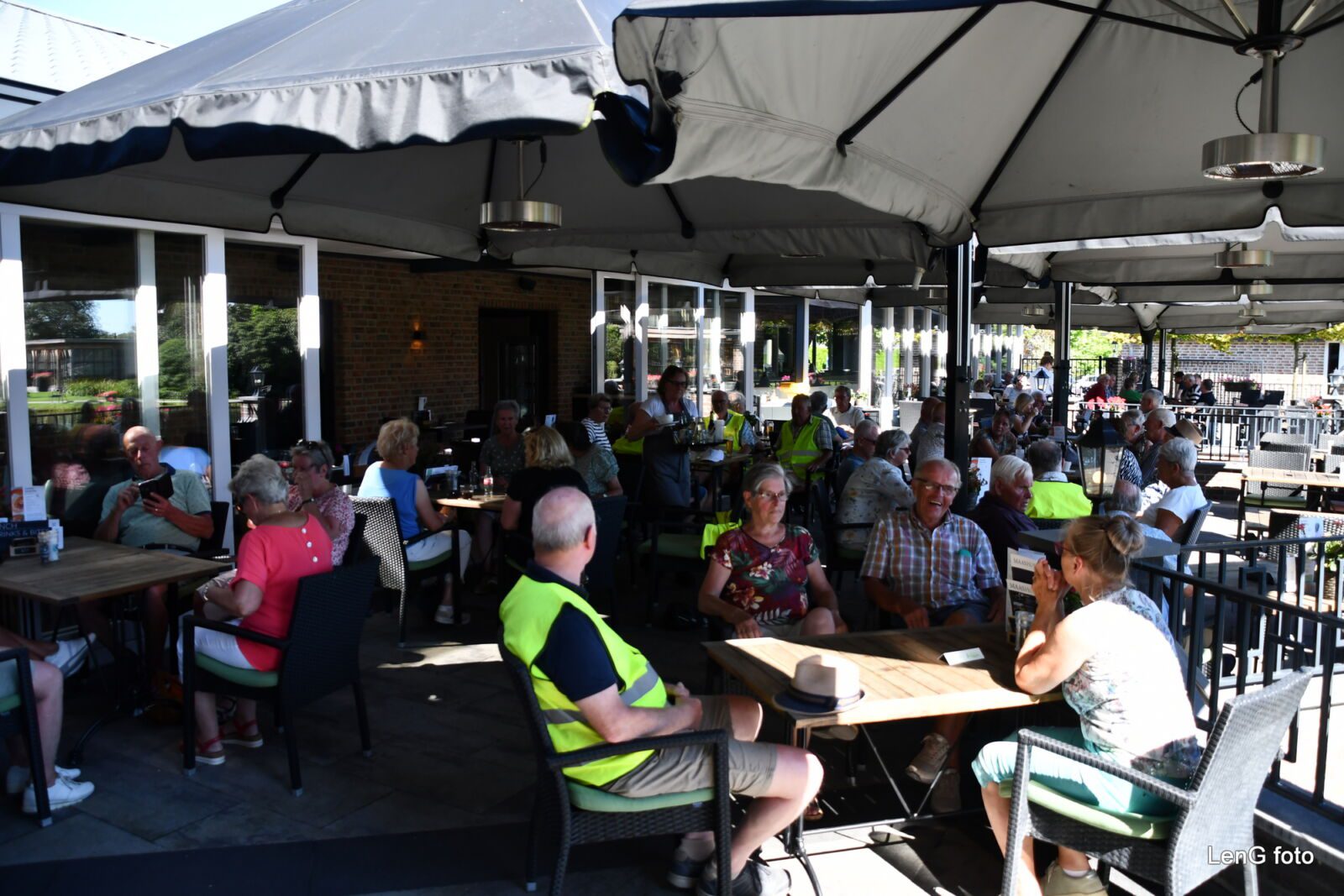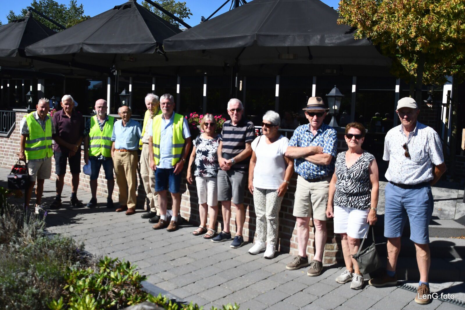 Aangesterkt na een relatief ruime pauze gingen de groepen weer op weg. Nu met de neus in zuidelijke richting en wederom door een fraai natuurgebied over deels onverharde, maar goed berijdbare fietspaden langs de Maas richting Grubbenvorst/Blerick. Net voor het noordelijke punt van Blerick werd de draai voorlangs de veiling gemaakt. Via het Floriadeterrein en fietspad “Greenport Lane” ging het vervolgens naar de Boekend waar op de 3e, tevens laatste, rustplaats werd genoten van enkele meest frisse consumpties op het mooie terras vóór de forellenvijvers van Hotel/Restaurant “Maashof”. Tevreden en voldaan ging het van daaruit uiteindelijk via de Hei huiswaarts waar tegen 16.30 uur de fietstocht op de Baarlose markt officieel werd ontbonden. Wederom een mooie tocht waarop volop genoten werd van het weer, de natuur en het onderlinge contact. De fietscommissie ontving weer de nodige complimenten, waarvoor dank!